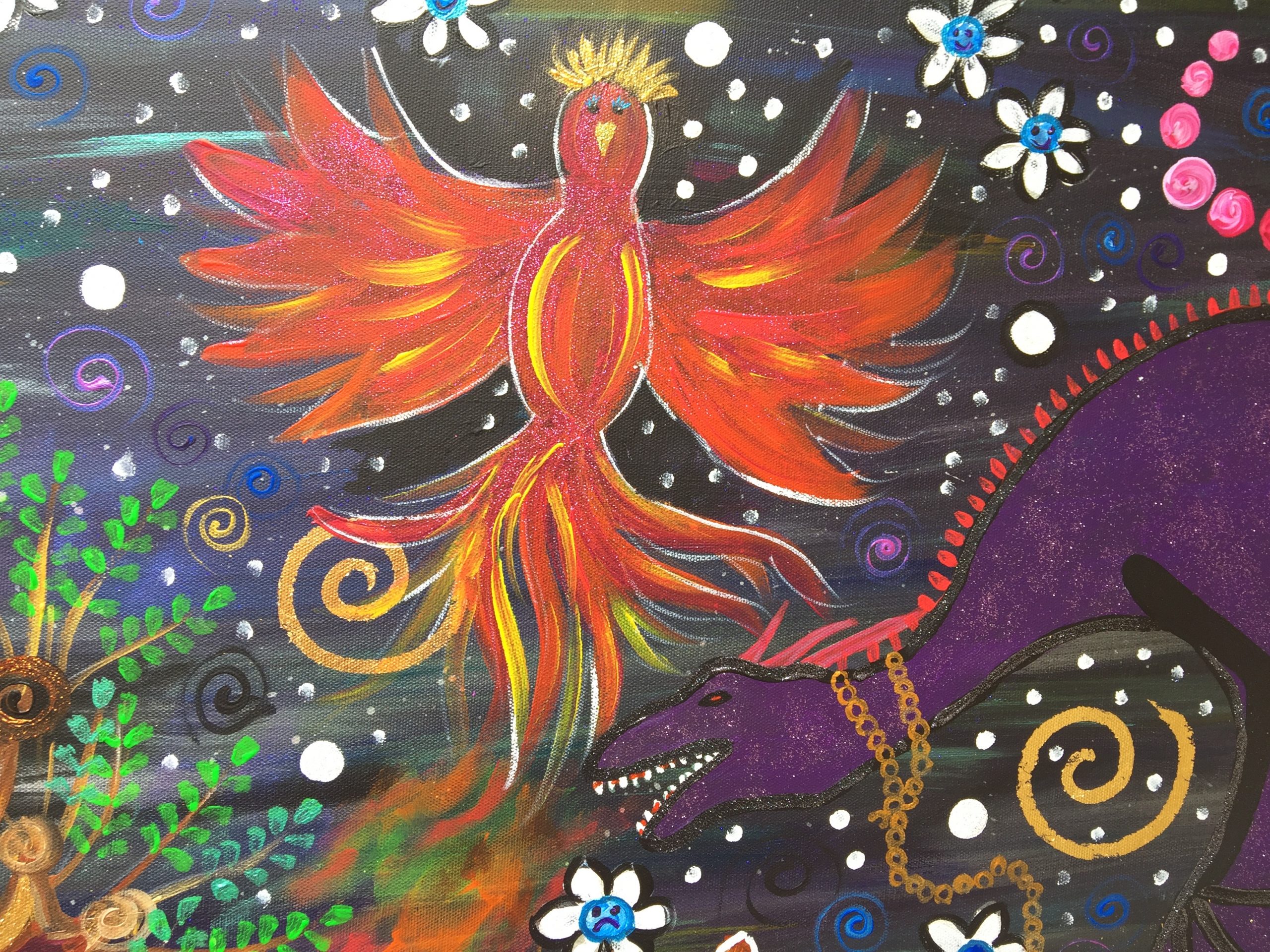 The darkness of this painting is very different to my usual work and it was a challenge to create a piece of art that I was comfortable with. It has been heartening to see the reaction and comments to SPIRIT OF MAGIC and I thank everyone for their support.